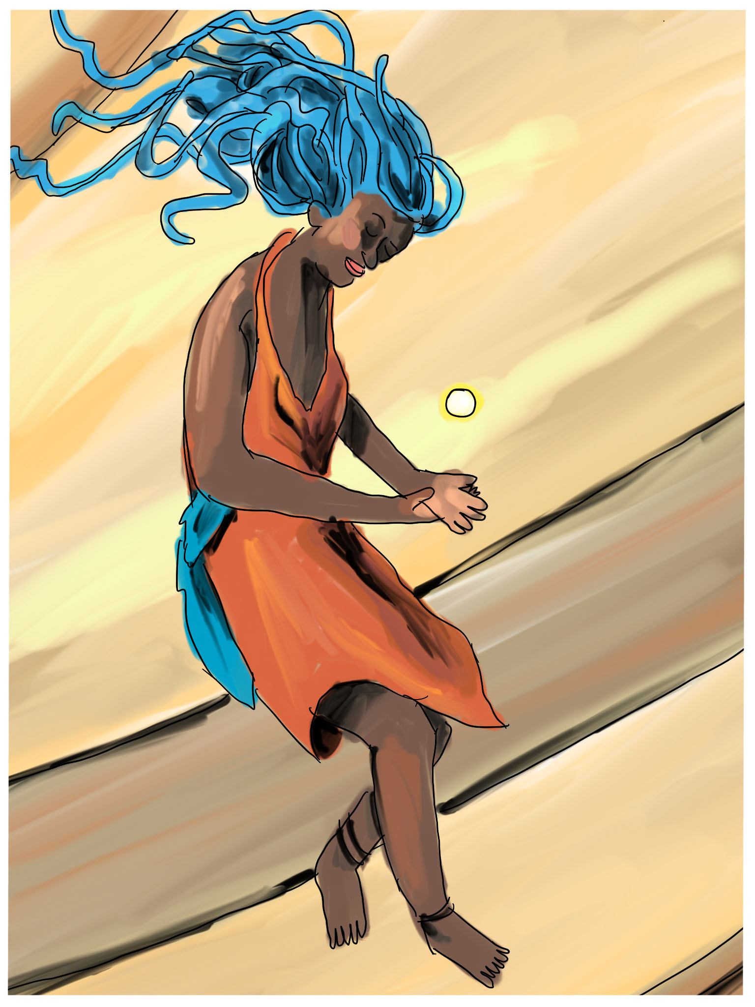 Pero vayamos al texto. El personaje principal (cuya voz en primera persona narrará ambas historias) es Binti, una joven de 16 años que habita en la Namibia de una Tierra futurista. Posee una mente privilegiada para las matemáticas, ciencia que cultiva ya que proviene de una familia de maestros armonizadores donde el uso de la misma tiene fuerte arraigo. Junto a su padre se dedica a construir astrolabios, unos aparatos de tecnología avanzada. Forma parte de los himba, tribu cuyo elemento identitario más característico es el uso del ojitze, una mezcla especial de arcilla y aceites esenciales con las que se cubren el cuerpo y los cabellos.